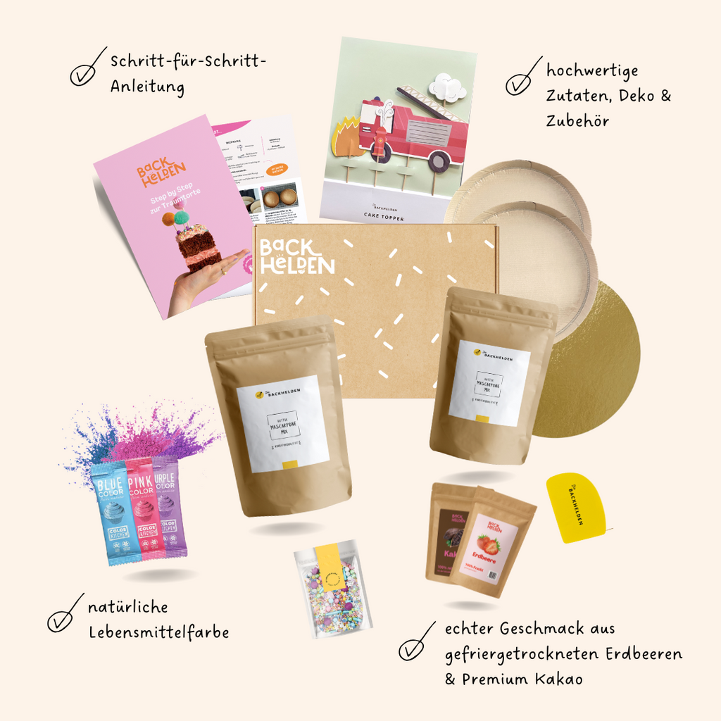 Ich liebe die Tortenkit von diebackhelden, bin der größte Fan.Es ist alles dabei was man braucht zum backen und dekorieren.
